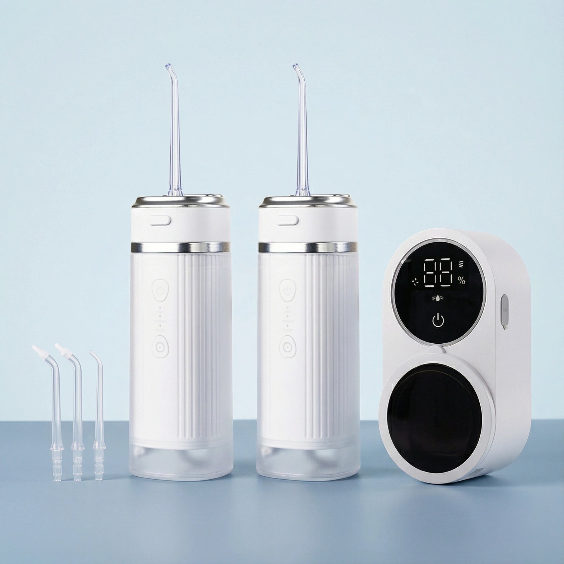 2× ZENT® Stream+ – zaawansowany irygator z ciśnieniem do 7 barów, technologią 360°, zbiornikiem FlexTank™ oraz trzema trybami pracy. Skutecznie usuwa płytkę nazębną i resztki jedzenia nawet z trudno dostępnych miejsc. Idealny dla osób z aparatami, koronami, implantami oraz przy problemach z dziąsłami.