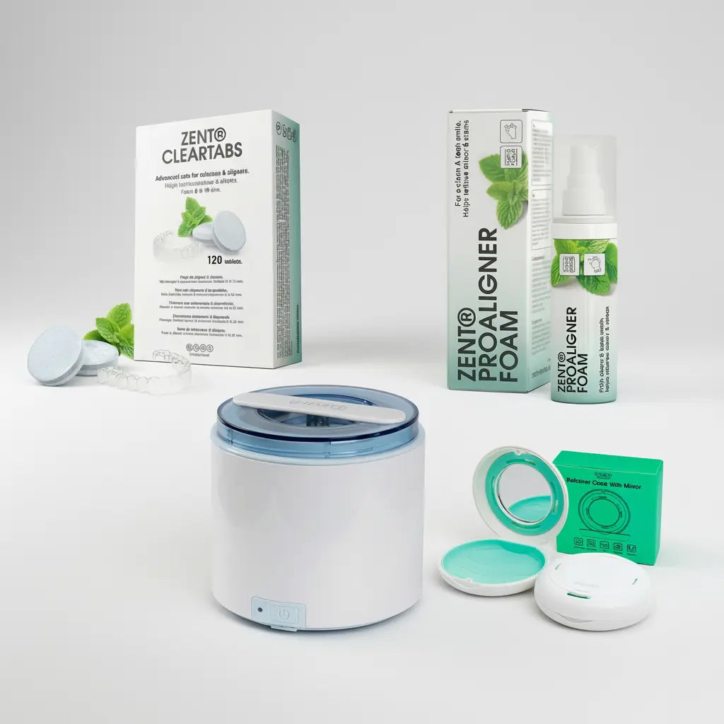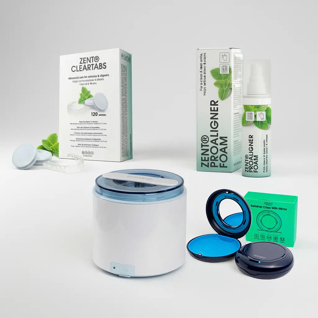 ZENT® Zestaw Kompleksowa Higiena Aparatów Wyjmowanych to rozwiązanie dla osób, które chcą zadbać o czystość nakładek, protez, retainerów, szyn i innych aparatów wyjmowanych w sposób wygodny i skuteczny. Zestaw łączy różne metody pielęgnacji, dzięki czemu wspiera higienę aparatów na każdym etapie ich użytkowania - od szybkiego odświeżenia w ciągu dnia po dokładniejsze czyszczenie okresowe.