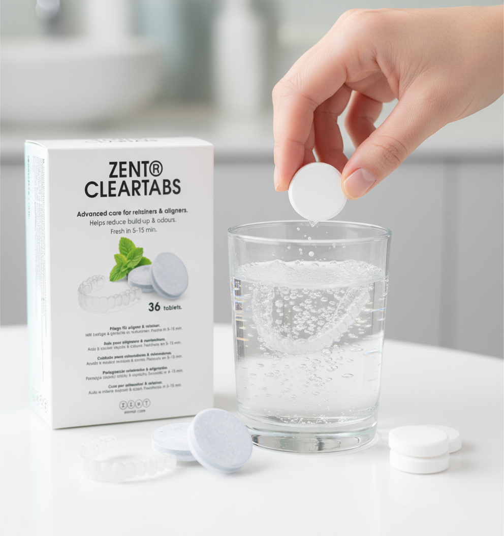 Delikatna formuła pomaga usuwać codzienne osady i zapachy z powierzchni wyjmowanych urządzeń stosowanych w jamie ustnej po ponownym założeniu — takich jak nakładki, retainery, wyjmowane elementy protetyczne czy szyny. Wspiera utrzymanie czystego i świeżego wyglądu, zapewniając komfort użytkowania.